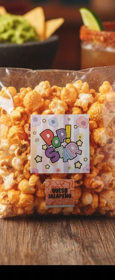 ¡AL ESTILO JALISCO! Orgullosamente hechas en Guadalajara con procedimiento artesanal y granos de maíz finamente seleccionados. Pop! Star es la botana más versátil que vas a encontrar para tus fiestas, reuniones, y convivios.